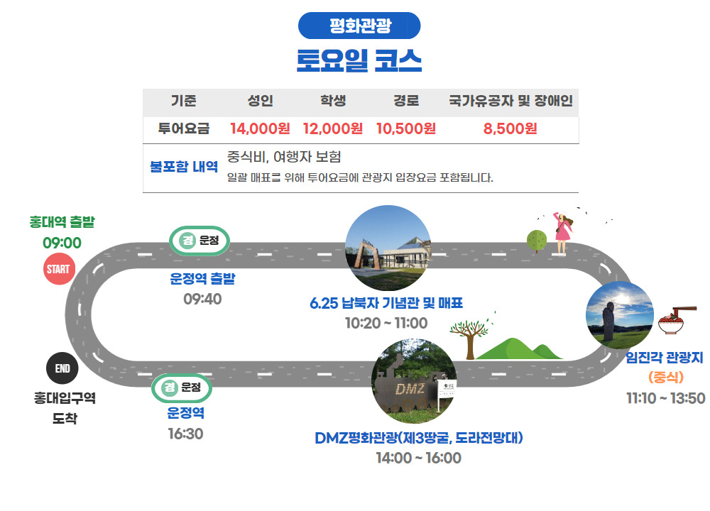 - 출발지: 홍대입구역(3번 출구)에서 오전 9시 출발, 운정역(1번 출구)에서 오전 9시 40분 출발.